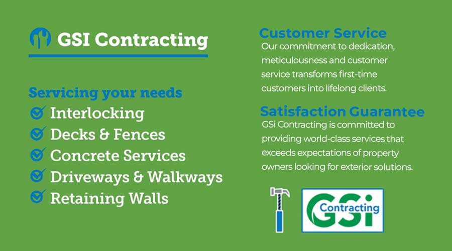 Whether you're looking to increase your property value, add curb appeal or are simply wanting a change to your exterior landscape, GSi Contracting has got you covered.