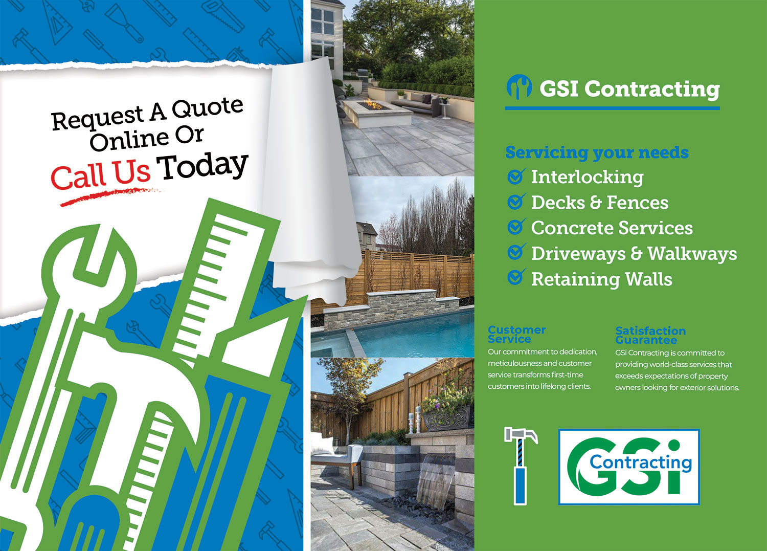 GSi Contracting offers top-notch landscaping and hardscaping services in Toronto, specializing in interlock pavers, permeable driveways, natural stone steps, decks, fences, and outdoor living spaces. Enhance your property's value and aesthetic with our expert team. Contact us for custom solutions that combine functionality and beauty, from retaining walls to BBQ islands and fire pits. Get a free quote today and transform your outdoor space with GSi Contracting's professional services.